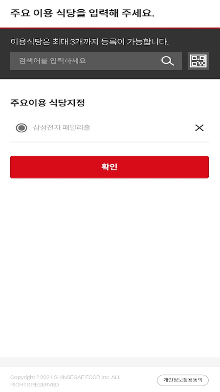 Jest to mobilna usługa APP, która dostarcza informacje o menu dla firm cateringowych obsługiwanych przez Shinsegae Food.