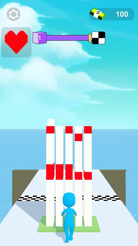 Collect as many squares of different colors as you can from the track, and at the end all the squares lean down to form a complete pattern