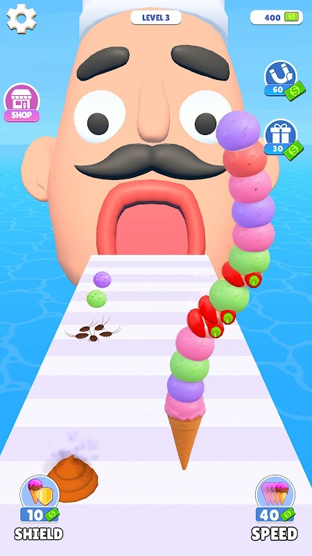 Układaj gałki lodów, biegnąc przez dynamiczne i kolorowe poziomy.