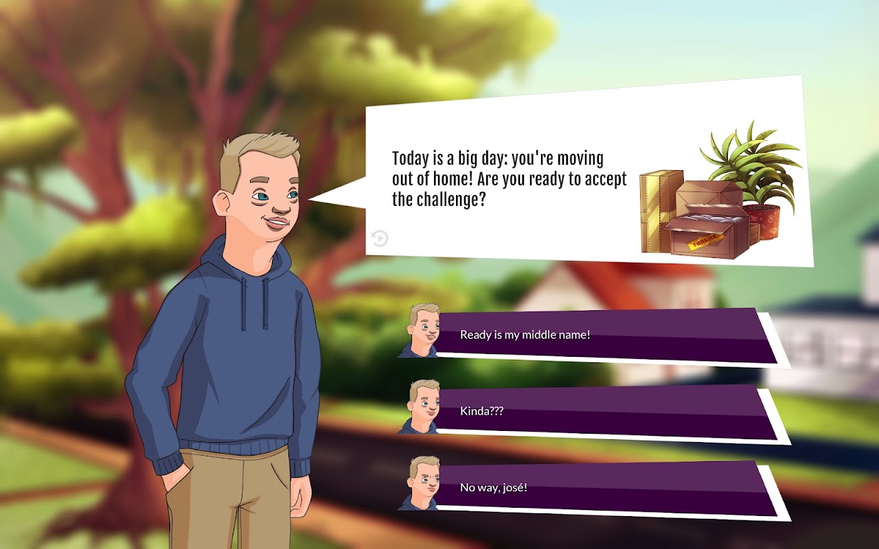 Gra jest wspierana przez narrację i jest rozwijana jako ciągła historia, w której gracz zawsze staje przed 3 możliwymi wyborami dla każdego scenariusza. Każdy poziom gry ma zadania, w tym znalezienie pracy, naukę jazdy samochodem, znalezienie nowych współlokatorów itp. i wiele innych.