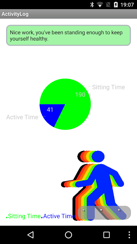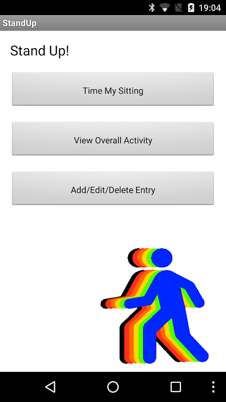 Standup został zaprojektowany, aby umożliwić ludziom monitorować ich siedzący tryb zachowania, w celu poprawy stanu zdrowia użytkownika. Aplikacja pozwala użytkownikom razem ich posiedzenia i aktywnego zachowania oraz dokonać przeglądu tego zachowania i odbierać informacje zwrotne. Celem wniosku jest uniemożliwienie ludziom siedzi na niezdrowych okres czasu.