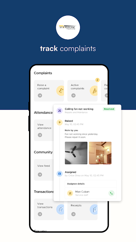 - Zgłaszaj skargi | Eskaluj problemy, dodając zdjęcia i otrzymuj bieżące informacje o postępach.