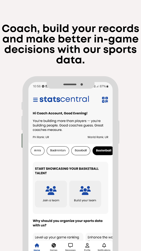 StatsCentral to platforma do profilowania zawodników sportowych, która umożliwia graczom rejestrowanie statystyk za pomocą naszych certyfikowanych statystyków, dołączanie do gier, dołączanie do drużyn i lig. Naszym celem jest zapewnienie scentralizowanej bazy danych aspirujących sportowców, aby w przyszłości mogli łatwo zostać rozpoznani przez ligi zawodowe.