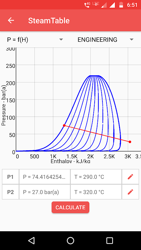 Tabela parowy aplikacja pozwala obliczyć własność termodynamiki wodą przy użyciu T, P.