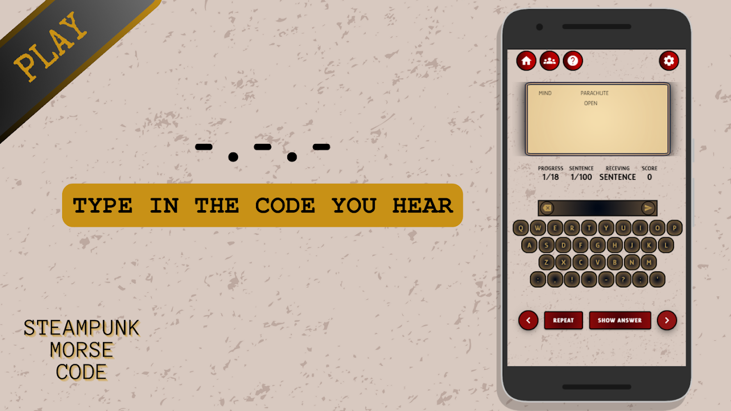 Sprawdź swoje umiejętności odbioru, słuchając transmisji Morse'a ze słynnymi cytatami i wypowiedziami z całego świata. Możesz dostosować poziom gry do swoich umiejętności, zmieniając dźwięk, włączając szum tła i losową kolejność, a także odbierając pojedyncze litery lub całe słowa naraz.