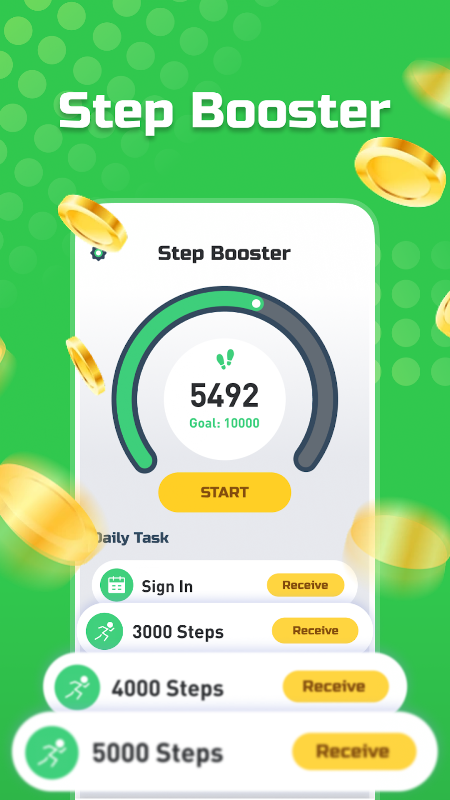 Step Booster to darmowy krokomierz, który może śledzić kroki, które przeszedłeś i spalone kalorie każdego dnia. Pomoże Ci zachować formę i wynagrodzi Twój ruch.