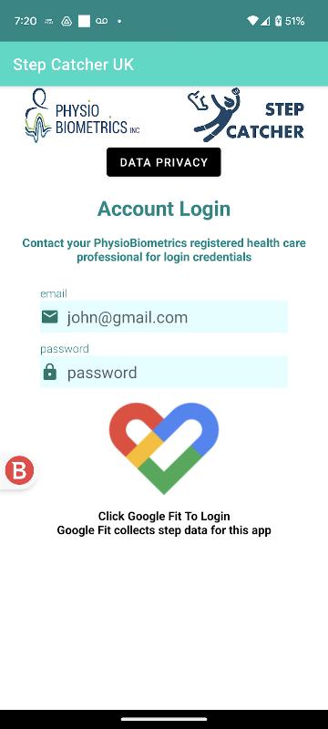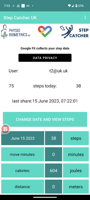 StepCatcher zapewnia naukowcom dostęp do danych kroków Google Fit. Dane są przechowywane w London Google Firebase.