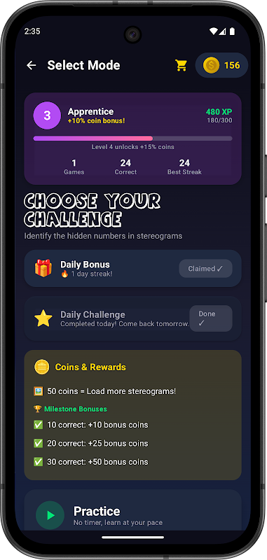 Trenuj wzrok ukrytymi obrazami 3D! Graj w quizy, zdobywaj monety i odblokowuj więcej