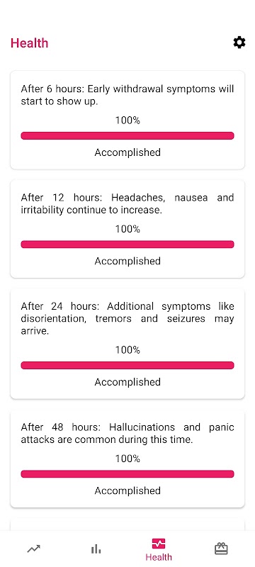 • Istnieje oś czasu, która pokazuje, jak daleko zaszedłeś w pokonaniu swojego nałogu!.