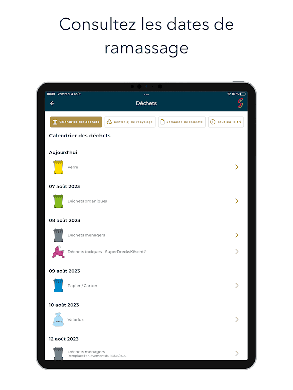 - Uzyskaj dostęp do dat odbioru śmieci i otrzymuj powiadomienie przypominające o wyniesieniu śmieci