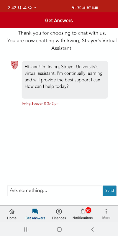 Aplikacja Strayer Mobile zapewnia łączność i organizację, dzięki czemu można płynnie włączać zdobywanie stopnia naukowego do intensywnego życia. Zadania, oceny, ważne ogłoszenia i aktualizacje kursów - wszystko zintegrowane z osobistym harmonogramem i zawsze z Tobą.