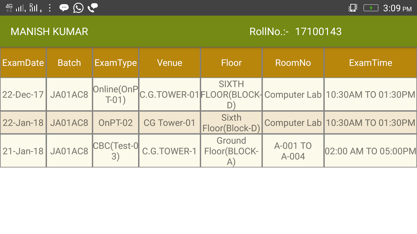 Student Time Table