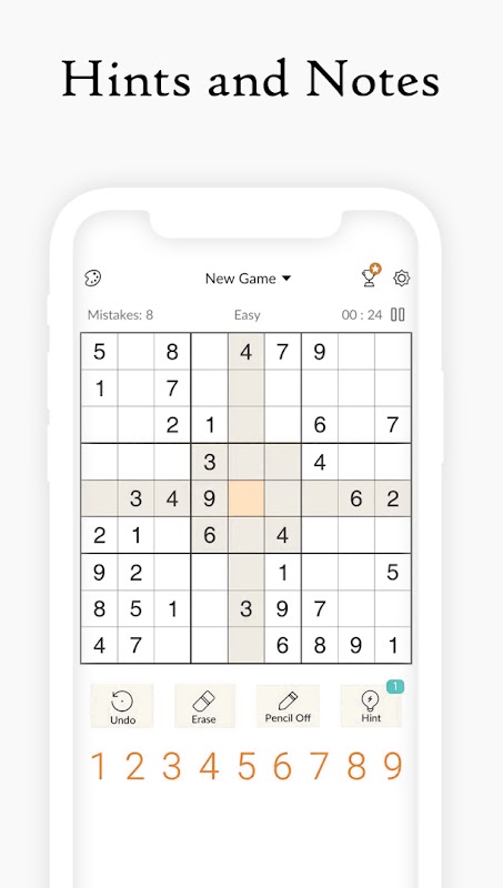 Dla przyjemności rozwiąż prosty poziom codziennych łamigłówek Sudoku. Trudne i średnie poziomy Sudoku poprawią Twoją zdolność logicznego myślenia. Popełniłeś błąd? Istnieją funkcje cofania i podpowiedzi, więc nie ma problemu! Nigdy się nie poddawaj!