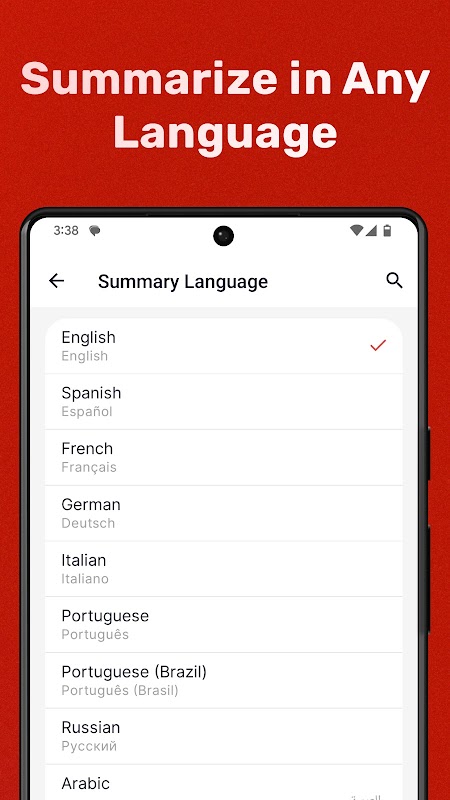 I zgadnij co? Aplikacja nie jest ograniczona językowo. Wybierz jeden z wielu języków, aby podsumować tekst. Aplikacja pozwala także wybrać styl podsumowania. Rozbite punkty? Sprawdzać. Przystępny dialog? Tak, my też to dostaliśmy. Proste, jasne akapity? Oczywiście. Dostosuj swoje podsumowanie tak, jak lubisz.