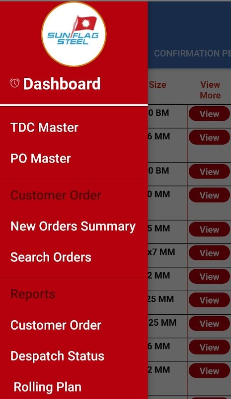 Sunflag marketing officer can log in with their existing credentials on the portal and see the placed order from customers. Marketing officer can accept, query sent to customer, etc. in this app.
