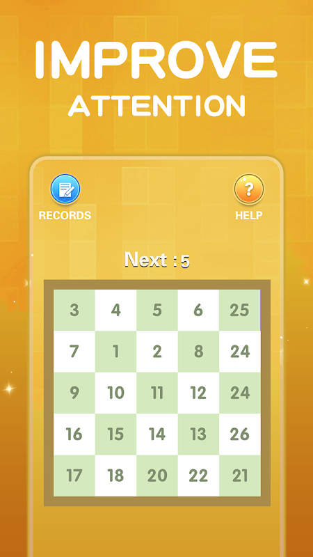 To jest gra Schulte Grid. Gracze muszą spojrzeć na liczby i dotknąć każdej liczby w kolejności rosnącej. Im krótszy czas po zakończeniu, tym wyższa koncentracja.
