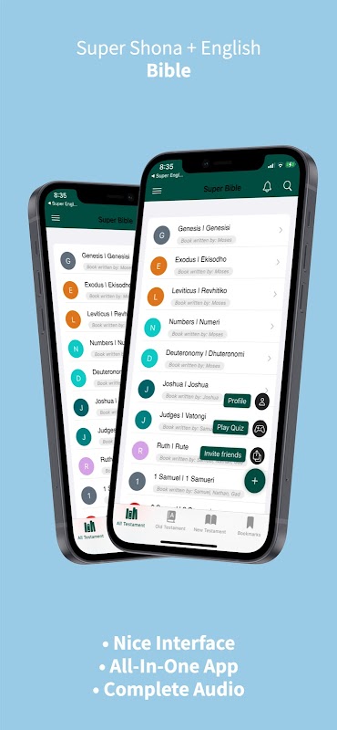 Zainstaluj pełną wersję Shona i angielskiej Biblii zarówno dla NIV, jak i KJV bezpośrednio na swoim telefonie z oszałamiającym interfejsem i pięknymi animacjami. Możesz czytać po angielsku i Shona obok siebie, a także możesz przełączać się między NIV i KJV dla języka angielskiego. Możesz rozwinąć jedną stronę, aby wyświetlić pełny ekran.