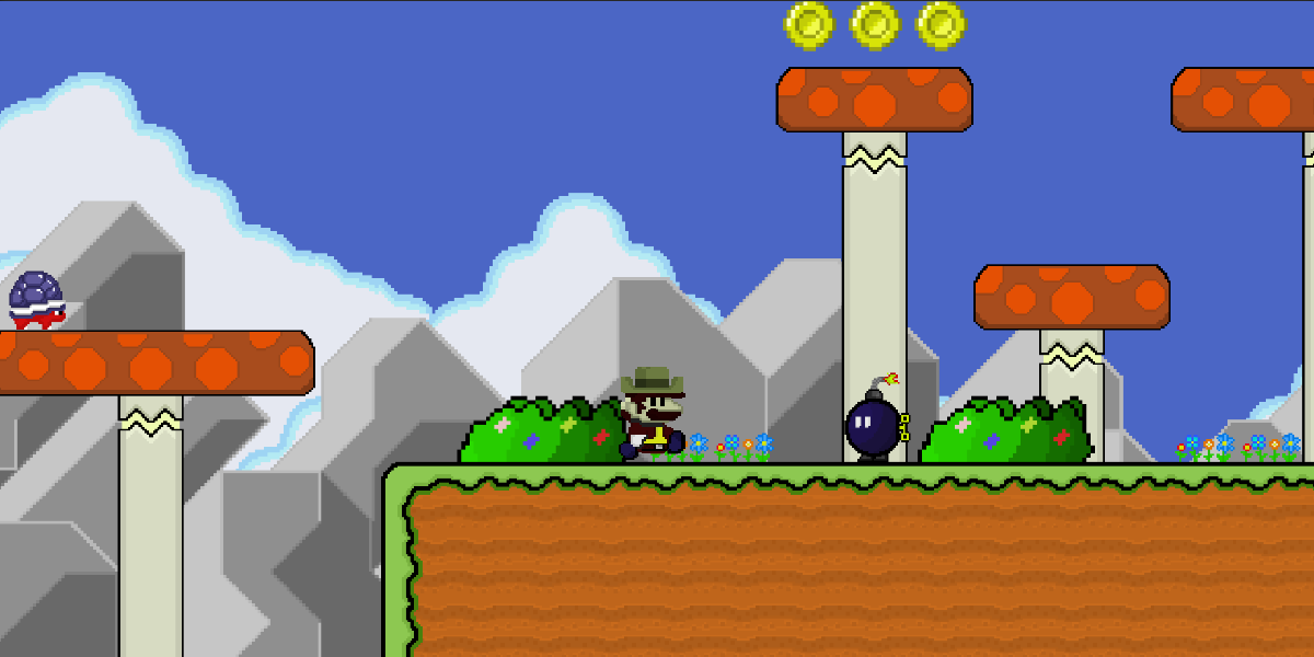 Świat był pełen wrogów po tym, jak księżniczka została porwana i zabrana do dużego zamku. Uratuj księżniczkę, przedzierając się przez dżunglę, jaskinie, góry, zbierając bonusy