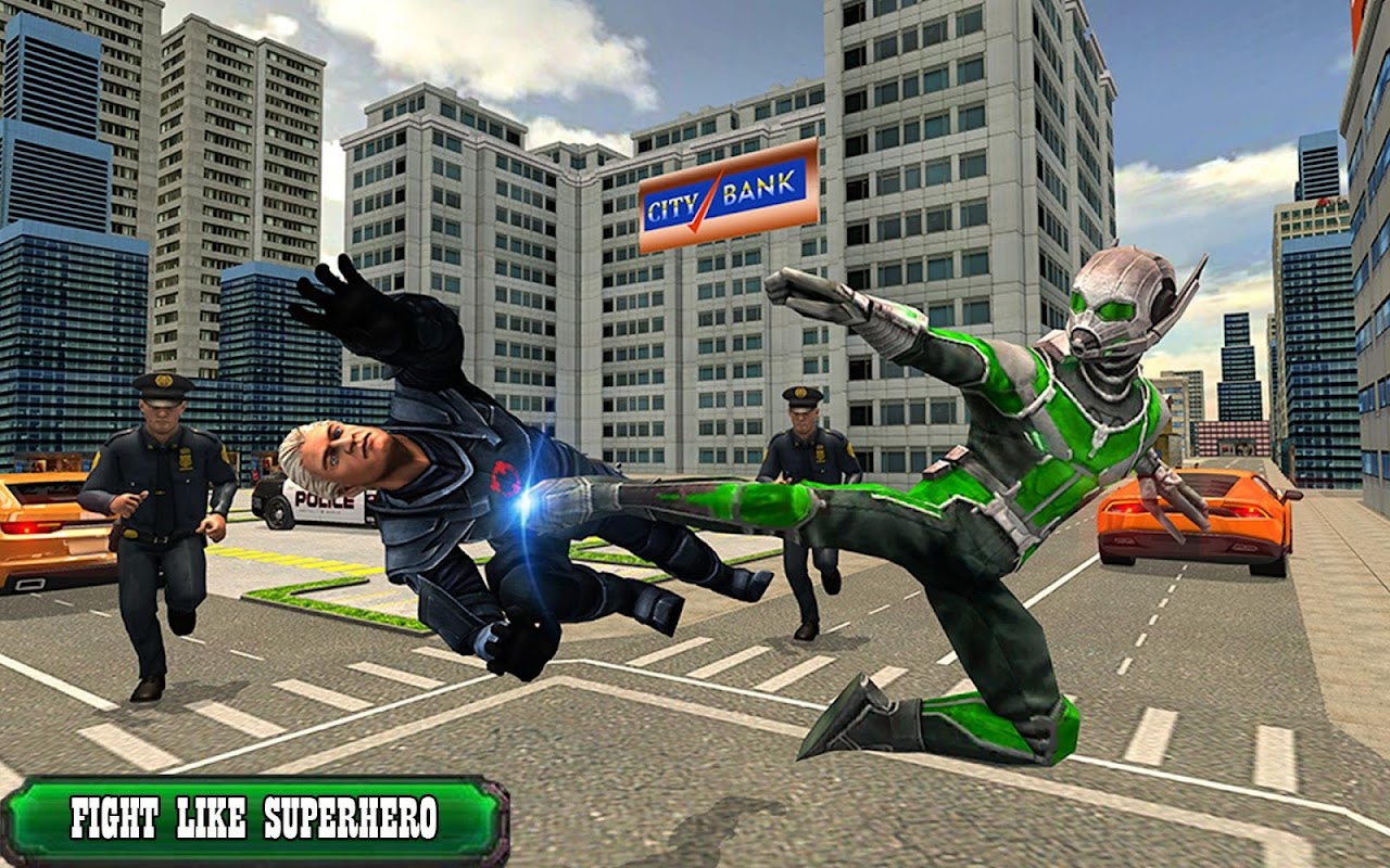 while playing this game, you are responsible of a hero that is having transformation for big and small structure to have thorough scuffle against the city mafia, gangsters and terrorists. It can walk to use his realistic physics against evils and also fly in the air to bring rag doll effects to the criminals. You have to depict the powers and strengths against moving focuses on the ground and inside the air. It makes you capable to be an avenger against your enemy to convert them into small sizes and again into big ones with the switches, it is furnished with.Insect Man our Superhero who is going for city rescue like a legend in a legend game best legend superhero among legend super hero games where our Insect Man as legend super hero having option for superhero fight, superhero fighters and superhero flying games. You will enjoy this superhero flying game with transformation, become a superhero fighters and fight like superhero fight during city rescue in our best superhero game.