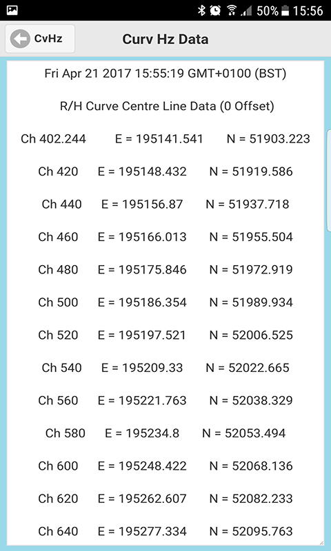8) Aplikacja Curve Hz służy do obliczania partii współrzędnych względem pikiety i przesunięcia wzdłuż prostej krzywej.