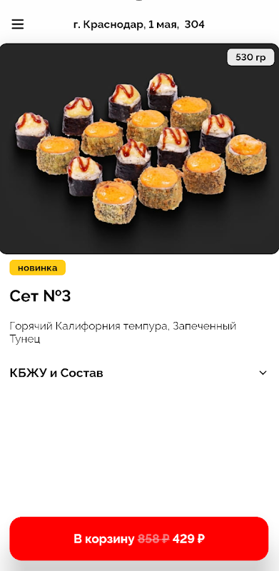 W 2017 roku otworzyliśmy pierwszy oddział z dostawą kuchni japońskiej, obecnie mamy całą sieć, a w Krasnodarze mamy 9 oddziałów, w których pracują wykwalifikowani specjaliści. Pyszne bułeczki przygotowujemy dopiero po złożeniu zamówienia, dlatego zawsze są świeże i smaczne. A nasi kurierzy dostarczą zamówienie pod wskazany adres w godzinach 10:00 - 21:30. Po wstępnym telefonie od operatora kurier dodatkowo skontaktuje się z Tobą i uprzedzi o wyjeździe pod wskazany adres