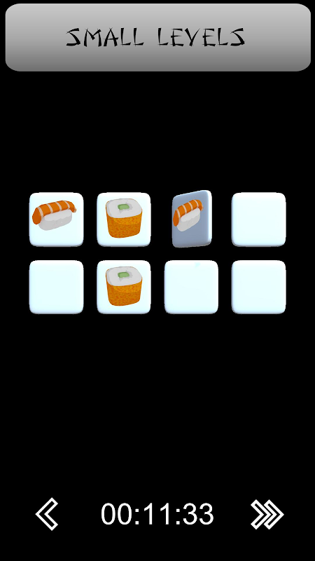 Some sushi dishes will be shown to you for a few seconds. You will have to remenber their position and find pairs once the tiles are face down.