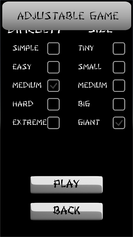 Size and difficulty are adjustable at practice games.