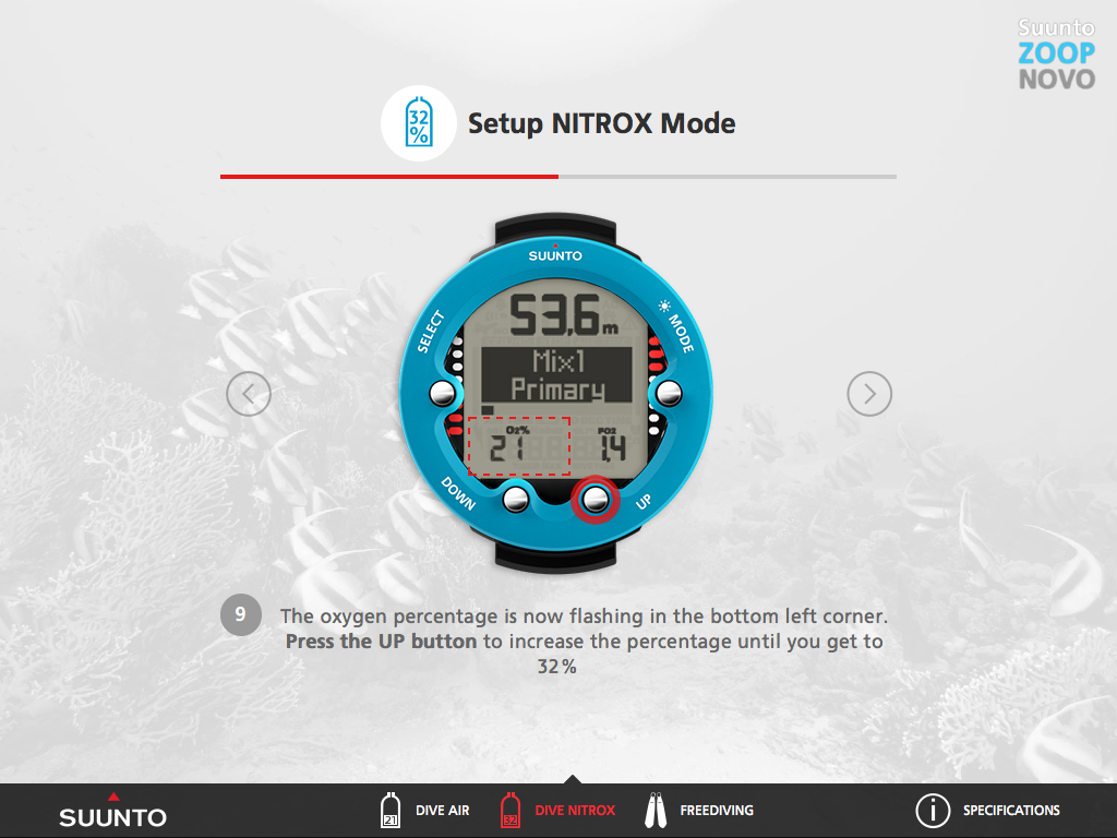 This tool shows you how to perform a variety of tasks, from setting up air and nitrox diving modes, through to accessing dive logs. In addition, this tool features virtual dives (air, nitrox and freediving), showing you how the computer operates during a dive.
