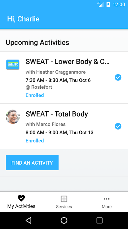SWEAT DC aplikacja umożliwia zaplanowanie swoich zajęć i spotkań.