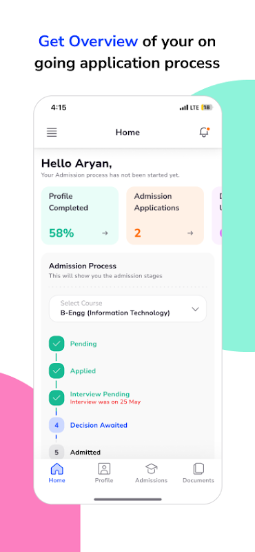 Użytkownik może aktualizować swoje dokumenty, wybierać spośród rekomendowanych aplikacji na kursy, znajdować szczegółowe informacje na temat kursów, polecać znajomym i rodzinie oraz natychmiastowo łączyć się z doradcą
