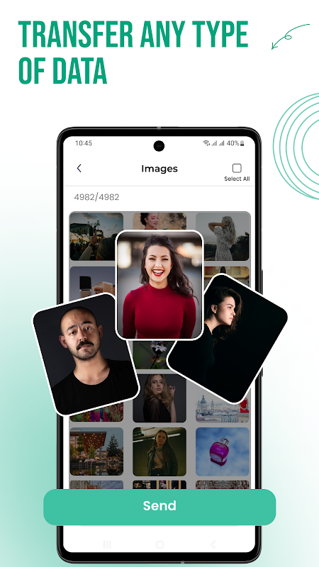 Przesyłanie danych przez smartfon umożliwia przesyłanie wszystkich plików z telefonu na telefon, w tym dokumentów, muzyki i innych multimediów. Przesyłanie danych Aplikacja Switch Phone zapewnia bezpieczne przesyłanie wszystkich ważnych plików i danych.