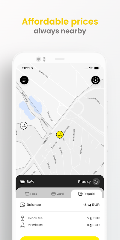 Nasze rozwiązanie obejmuje skutery elektryczne bez doków, które są dostępne w każdej chwili, aby przewieźć Cię przez miasto. Po prostu dotknij, aby znaleźć pojazd w pobliżu, zeskanuj kod, aby go odblokować i jedź!