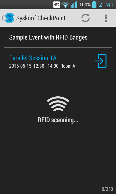 Na podstawie danych zebranych od wszystkich skanerów Syskonf na bieżąco oblicza aktualną liczbę uczestników obecnych na danej sesji lub w danej sali. Liczba obecnych gości jest również synchronizowana zwrotnie i wyświetla się w każdej połączonej aplikacji CheckPoint.