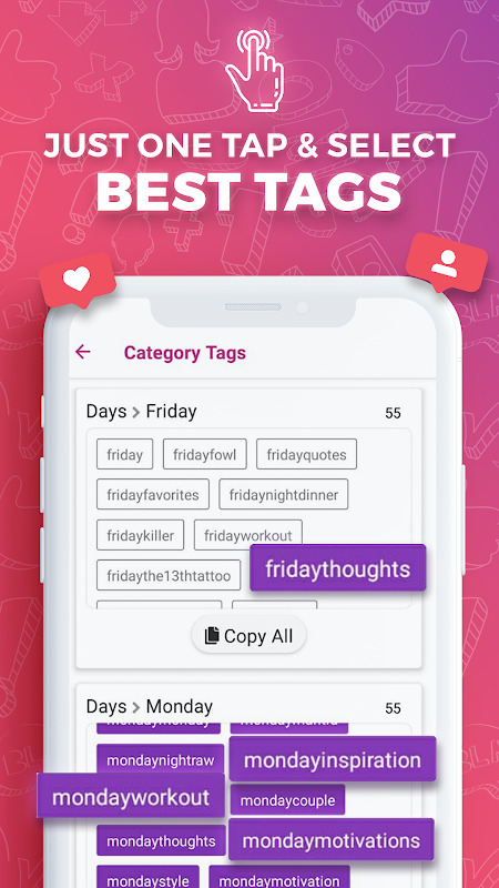 Dzięki tej aplikacji możesz znaleźć atrakcyjne napisy do swoich postów na Twitterze, TikTok i Instagramie. Pomoże Ci także szybko zdobywać popularność dzięki kierowaniu na właściwe hashtagi. HashTags na Instagram to kompleksowe narzędzie do wyszukiwania hashtagów w mediach społecznościowych, trendów hashtagów, hashtagów na Twitterze, hashtagów na Instagramie, hashtagów na TikTok, hashtagów na Youtube, popularnych hashtagów i trendów w hashtagach.