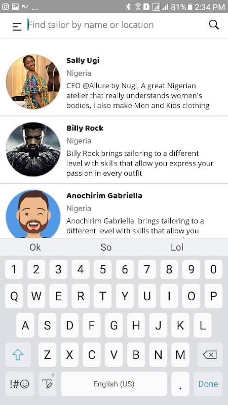 Tailorgang is a community and marketplace for tailors customers, fashionistas and would-be tailors to discover new ideas, style, trends and get value for product and services from around the world online using a mobile phone, tablet or PC. Tailorgang is an app designed to connect all the continents of the world in clothing. It was birthed to heal the deficiencies in online fashion apps, dress you up from the comfort of your home and create more tailors by allowing tutorials to be shared which afford prospective tailors the opportunity to learn. Tailorgang creates an avenue for tailors, who can't afford to rent shops, to have online shops at more affordable rates and, most importantly, showcase their designs to a wider range of customers.