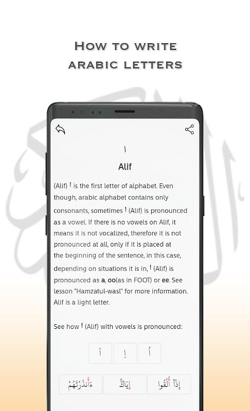 Naucz się alfabetu arabskiego i naucz się pisać każdą literę po kolei. Zasady przedłużania samogłosek podczas czytania, zasady zatrzymywania, czym są znaki stopu.