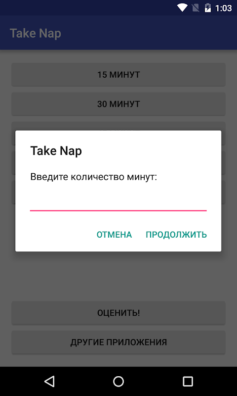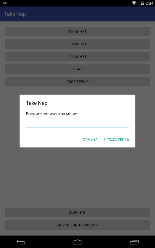Najlepszy przedział na popołudniową drzemkę - to 15-30 minut. Umieszczenie Usługa chce nie zawsze tak jest, czasami po prostu chcesz to gotowe ustawienia, a to dla tego i jest to prosta aplikacja została stworzona. Jeśli chcesz spać w ciągu dnia, można łatwo wybrać żądany czas, a aplikacja będzie Cię obudzić, kiedy trzeba.