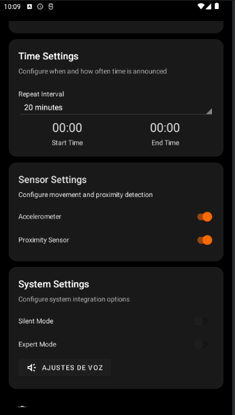 Podczas potrząsania telefonem (również ręką), mówi czas.