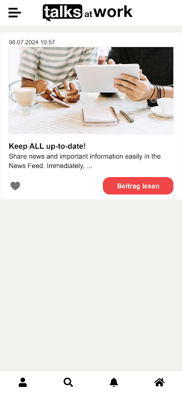 Pobierz aplikację społecznościową „talks at work” i nawiąż kontakt z innymi osobami zmieniającymi zasady gry, aby zrewolucjonizować przyszłość wewnętrznej i zewnętrznej komunikacji korporacyjnej. Zaprezentuj swoją wiedzę w Business Hub, udostępniaj otwarte oferty pracy i inne wiadomości o Twojej firmie. Pogłębiaj swoją sieć poprzez bezpośrednią wymianę na czacie, korzystaj z ekskluzywnych spostrzeżeń na temat popularnych tematów jutra! Plus: Weź udział w naszych ekskluzywnych wydarzeniach i spotkaniach sieciowych. Złóż wniosek już teraz na stronie talksatwork.com/community i zabezpiecz swoje wyłączne dane dostępowe do aplikacji.