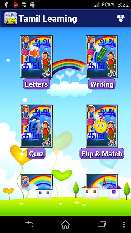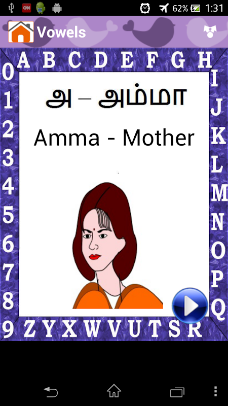 Tamil Alphabets Teacher is an virtual Tamil language teacher to teach letters identification, pronunciation, writing (Vowels & Consonants) and some vocabulary.