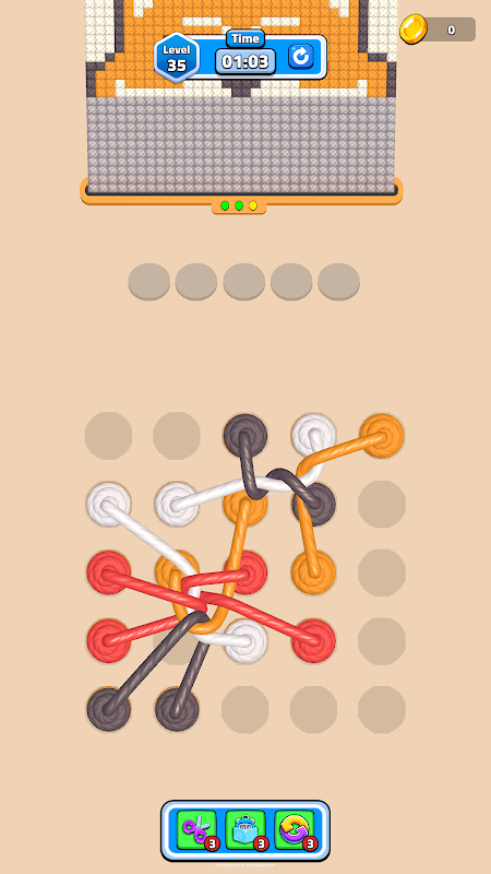 🏆 Ukończ poziomy, uwalniając wszystkie splątane wątki i kończąc projekt!