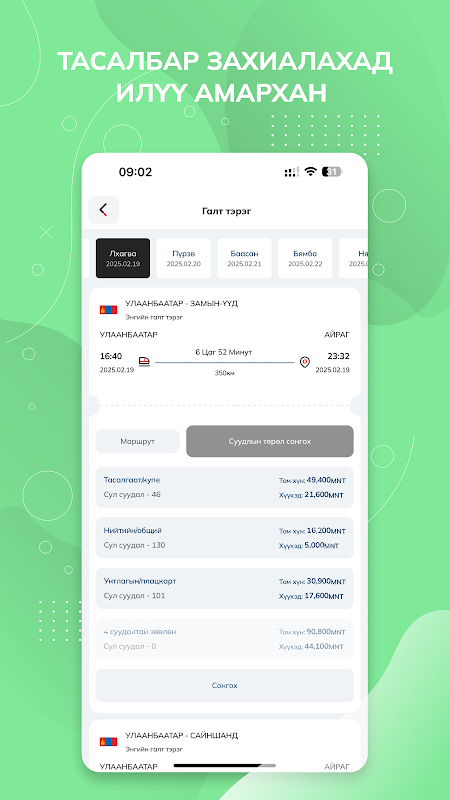 - Хүссэн суудлаа захиалах боломж