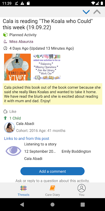 Jest to aplikacja towarzysząca dla Tapestry, EYFS Online Learning Journal.