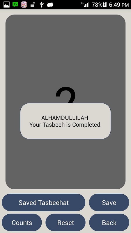 No need to carry tasbeeh in your pocket. Use your android smart phone as your tasbeeh. This App will help you to recite your Tasbeeh, whenever you want or where ever you want.