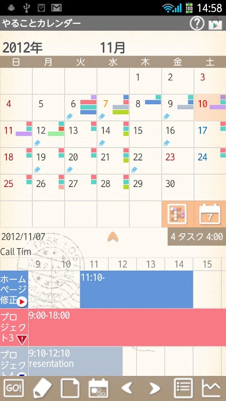 2. 「Harmonogram zadań Edit」: Save zadania i trzymać kolor zadania na dzień. Edytuj kolory tła i MEMO etc ... z przycisku ołówka.