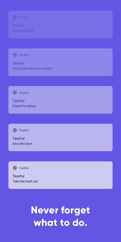 Taskful to inteligentna lista rzeczy do zrobienia i aplikacja do zarządzania zadaniami, która pomaga dotrzymywać terminów i dotrzymywać terminów. Rozkłada wszystkie twoje zadania i pokazuje ci tylko, co musisz zrobić dzisiaj, abyś mógł pozostać skupiony i zmotywowany. Niezależnie od tego, czy próbujesz śledzić swoje kroki, pić więcej wody, czy czytać książkę, której nie kupiłeś od dłuższego czasu, Zadanie jest zaprojektowane, aby pomóc ci załatwić sprawę.