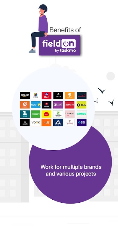 Taskmo FieldON is a platform for sales professionals to work with India’s best and premiere brands . These sales professionals are called Field Partners whose services include onboarding of merchants / Retails / Partner acquisitions in B2 Retail, B2B, B2C and B2SMB .