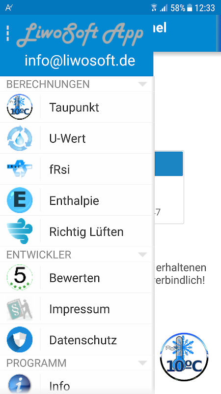 Mir dieser App, können Sie den Taupunkt und die Schimmelgrenze ausrechnen.