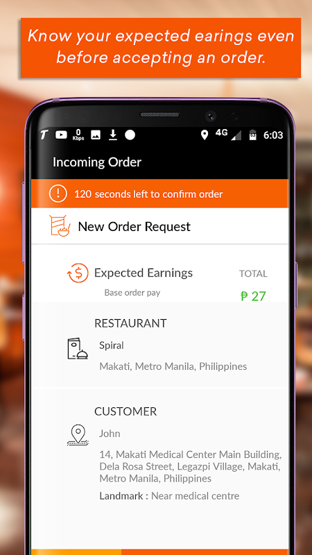 The earnings from each order is displayed once it has delivered and overall ratings could also viewable. Commissions are deducted from the pre-loaded driver wallet
