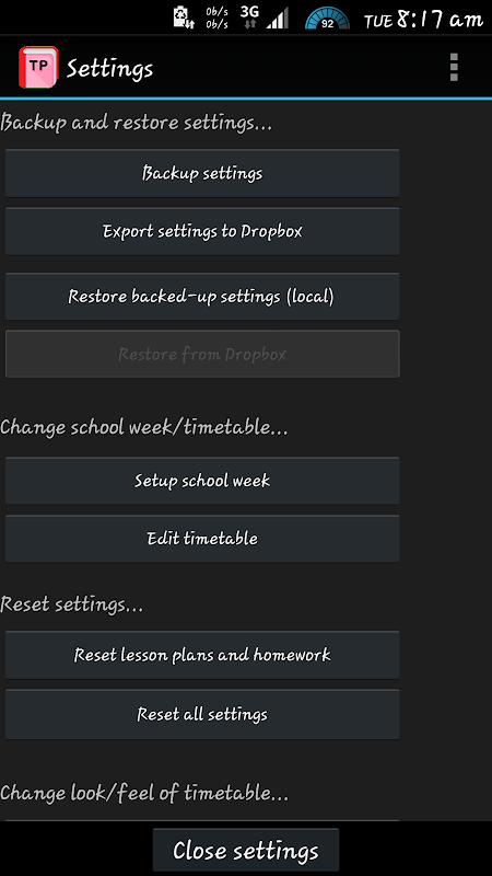 - NEW: Save/restore settings and data to Dropbox! Can use this to sync between devices.